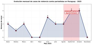 El año 2025 presenta una realidad contradictoria. Mientras Paraguay logró una condena judicial histórica por violencia contra mujeres periodistas y mantuvo por segundo año consecutivo la ausencia de asesinatos contra trabajadores de prensa, periodistas de investigación fueron atacados con bombas molotov y ráfagas de balas en sus hogares.